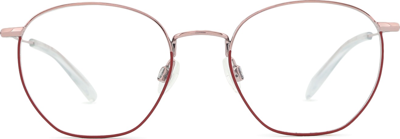 De roze kleur van het montuur past perfect bij een koele huidskleur en