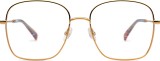 - Het gouden montuur past perfect bij een warme huidskleur en donkerbruin haar.