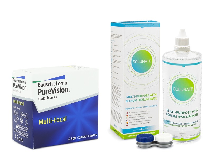 PureVision Multi-Focal (6 lenzen) + Solunate Multi-Purpose 400 ml met lenzendoosje
