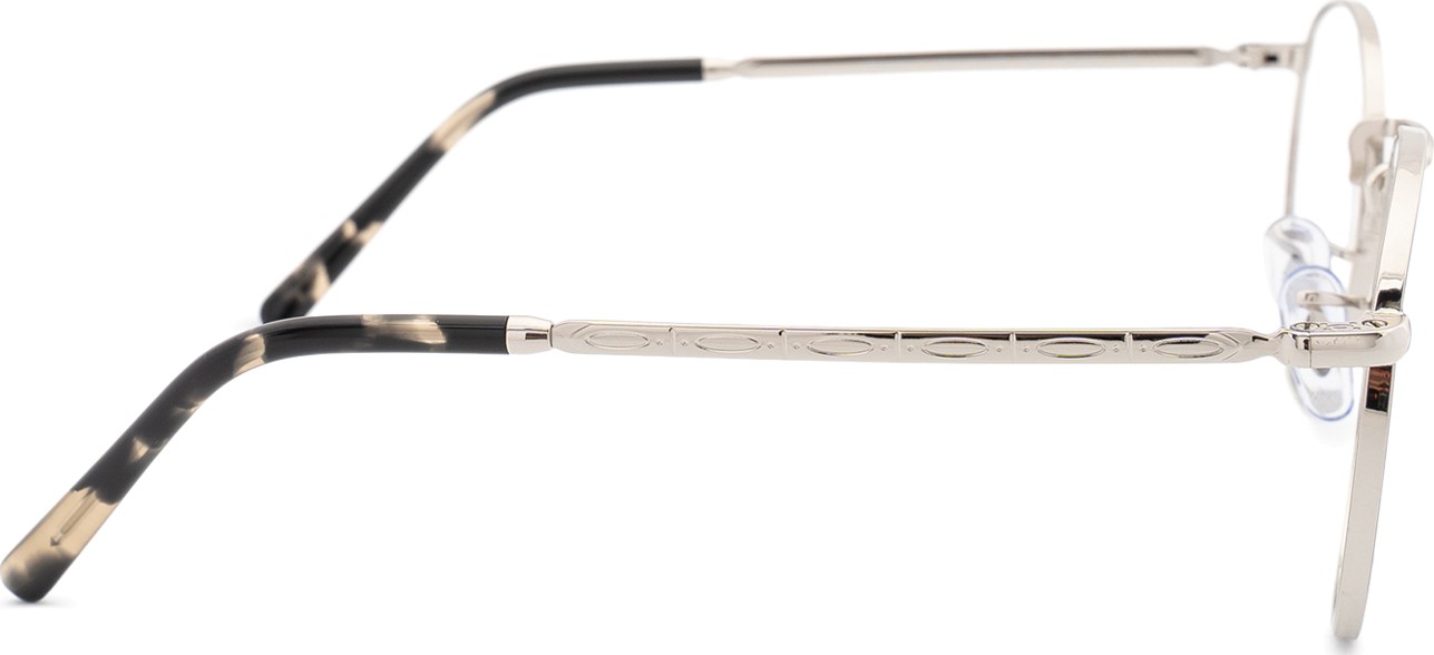 - Het zilveren montuur past perfect bij een koele huidskleur en bij rood, grijs, wit of donkerblond haar.