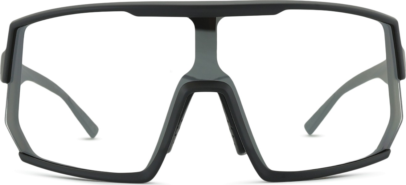 De zonnebril heeft meekleurende, fotochromische glazen die zich